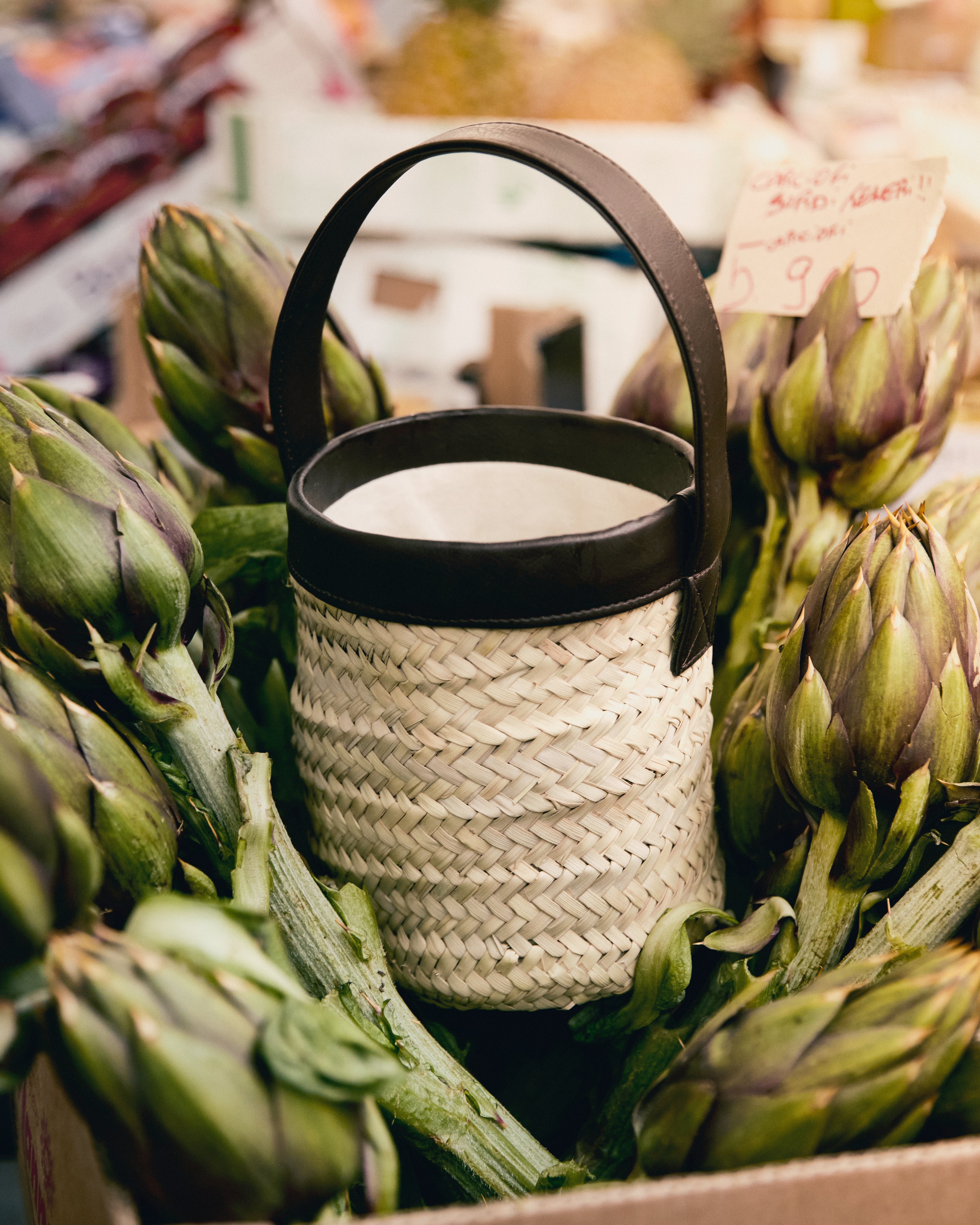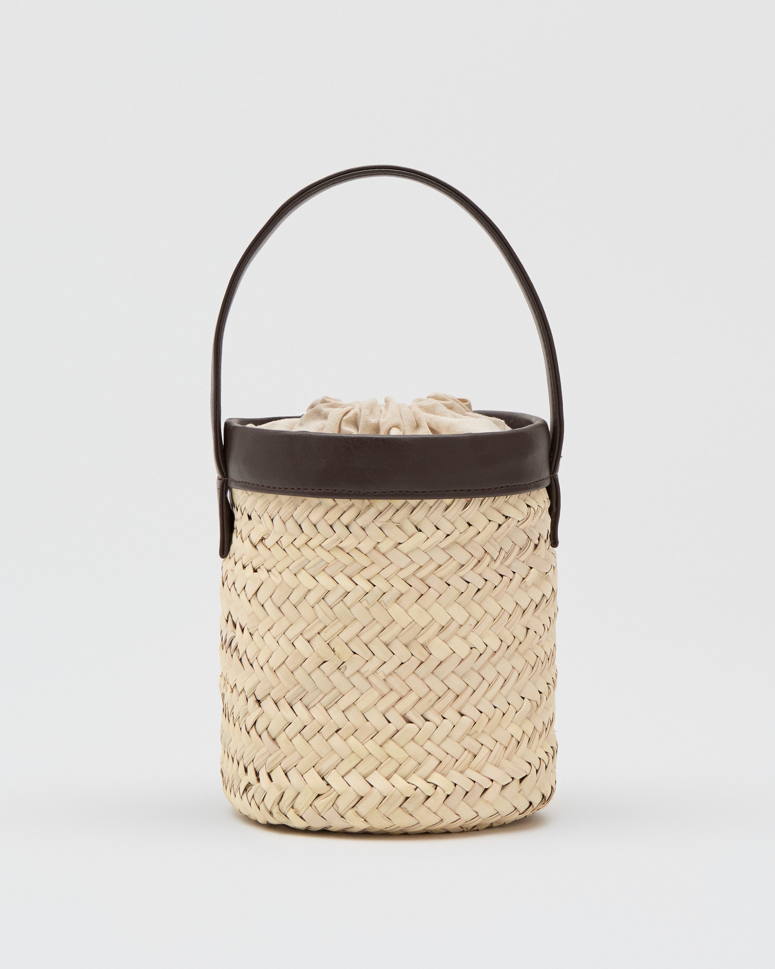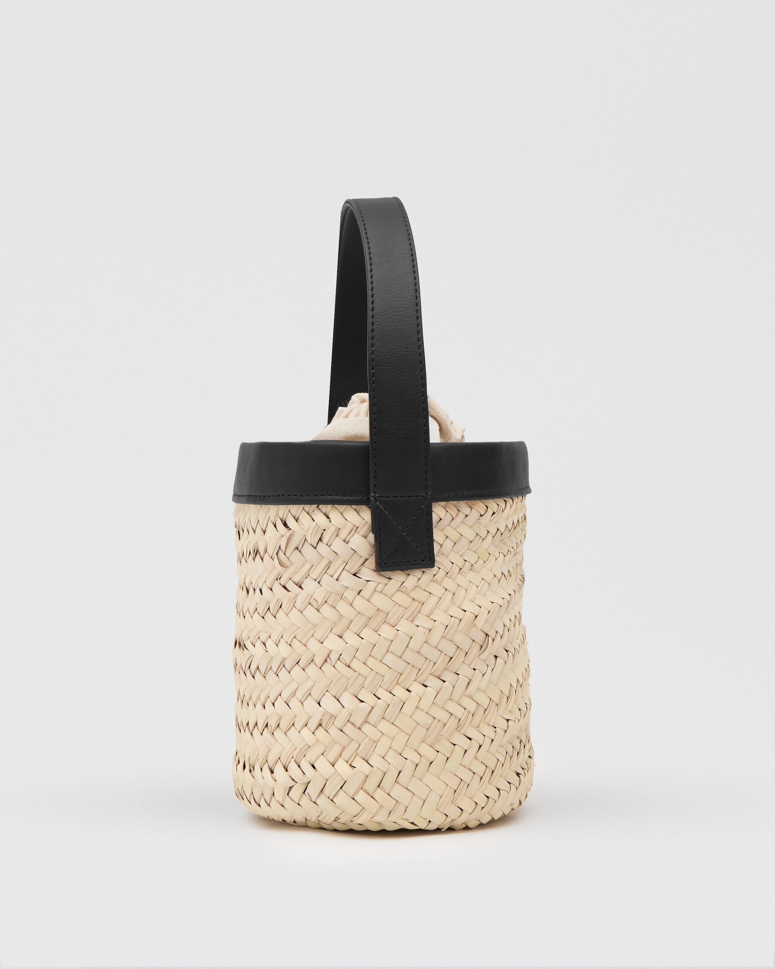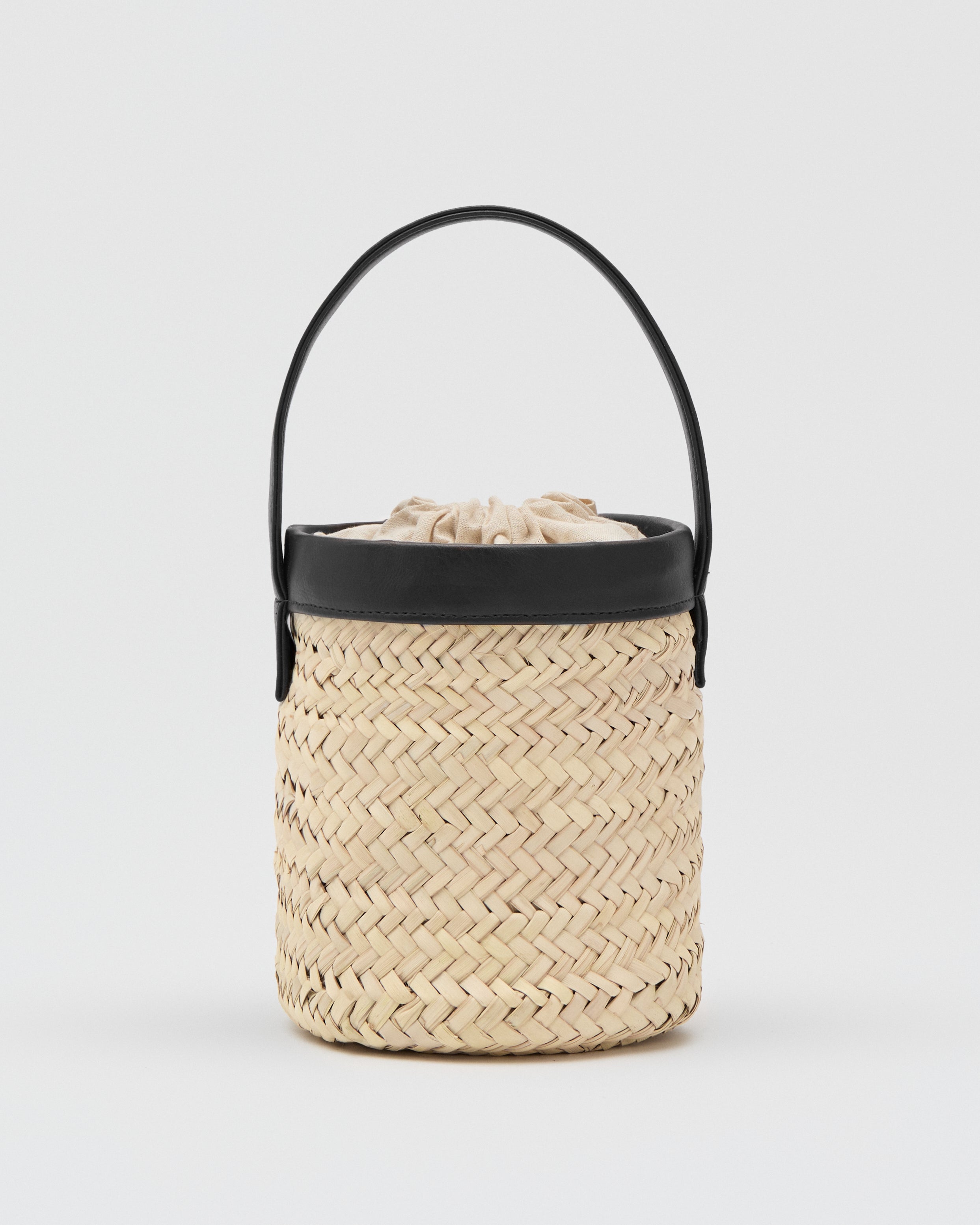 Crafted from woven straw with colorful leather details, it’s designed to be carried by hand. Ideal for evenings out or for giving even the simplest outfits an easy-chic twist.