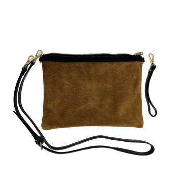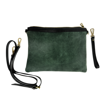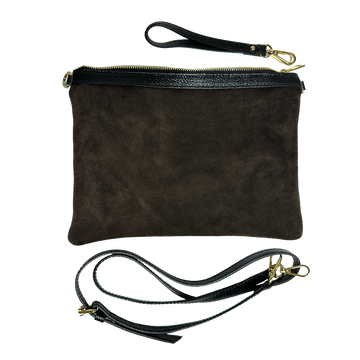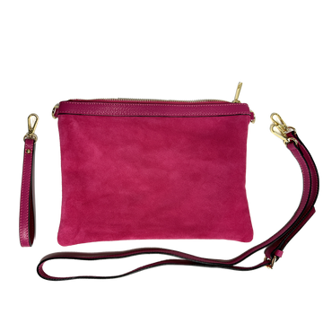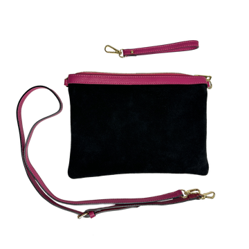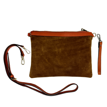 A versatile clutch, perfect for any occasion—from evenings out to travel to everyday use. Crafted from soft, lightweight suede with colorful leather details.
