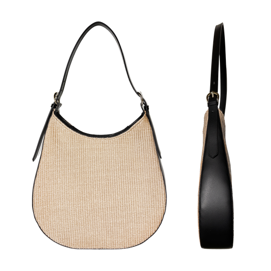 It’s a maxi hobo that combines elegance and functionality in a relaxed, contemporary design. Crafted in raffia or suede with leather details, its extra-roomy size makes it the perfect companion wherever you go.