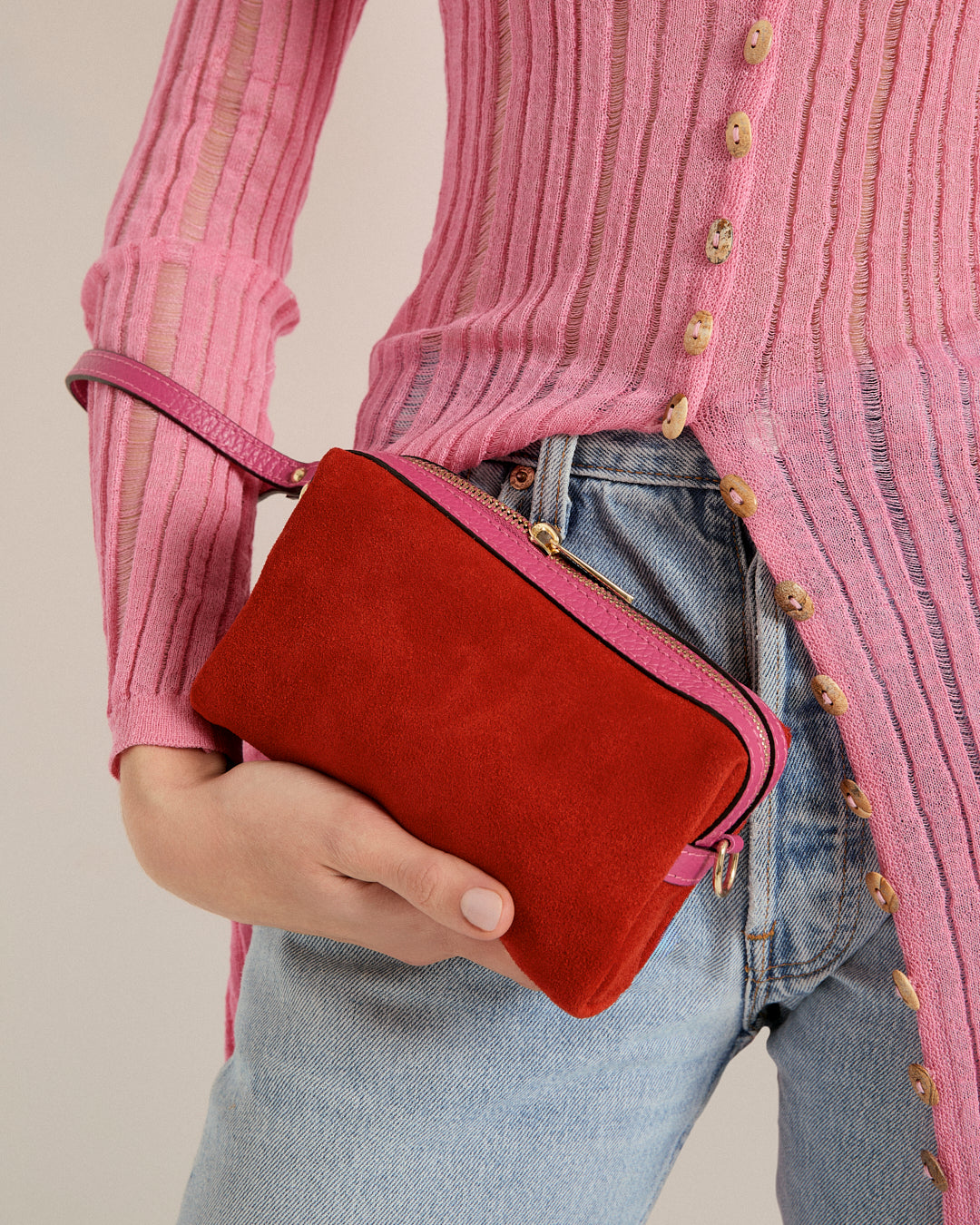 Wear it on the wrist or crossbody.
