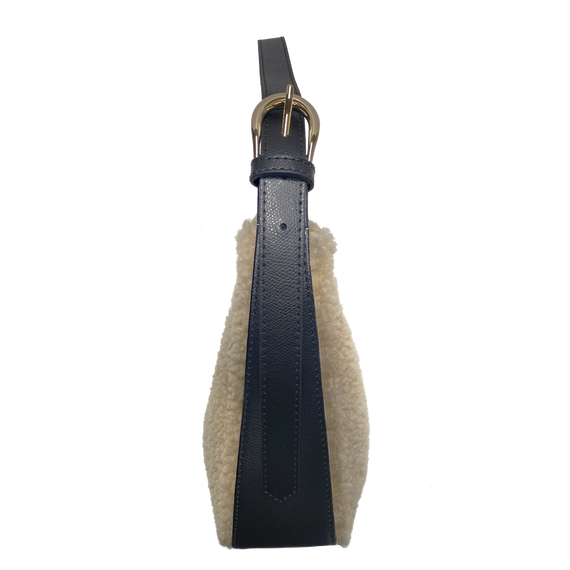Realizzato in montone con dettagli in pelle saffiano, si distingue per la sua e raffinatezza assoluta.