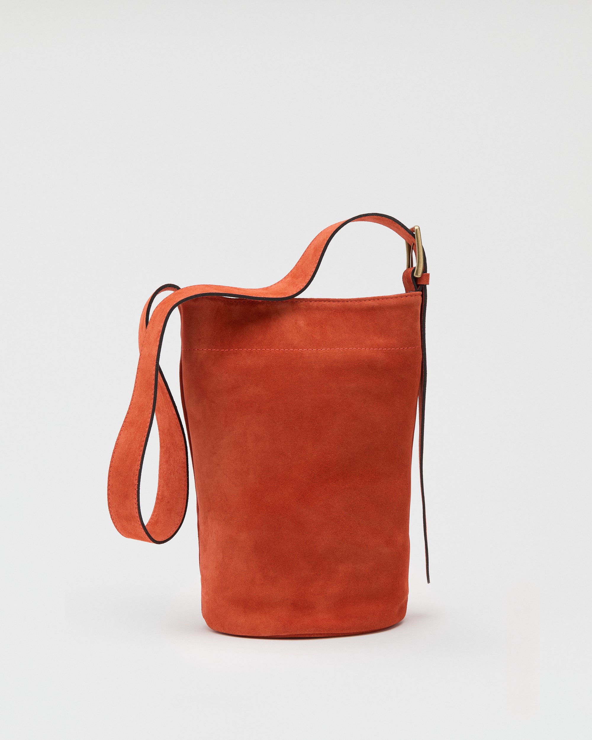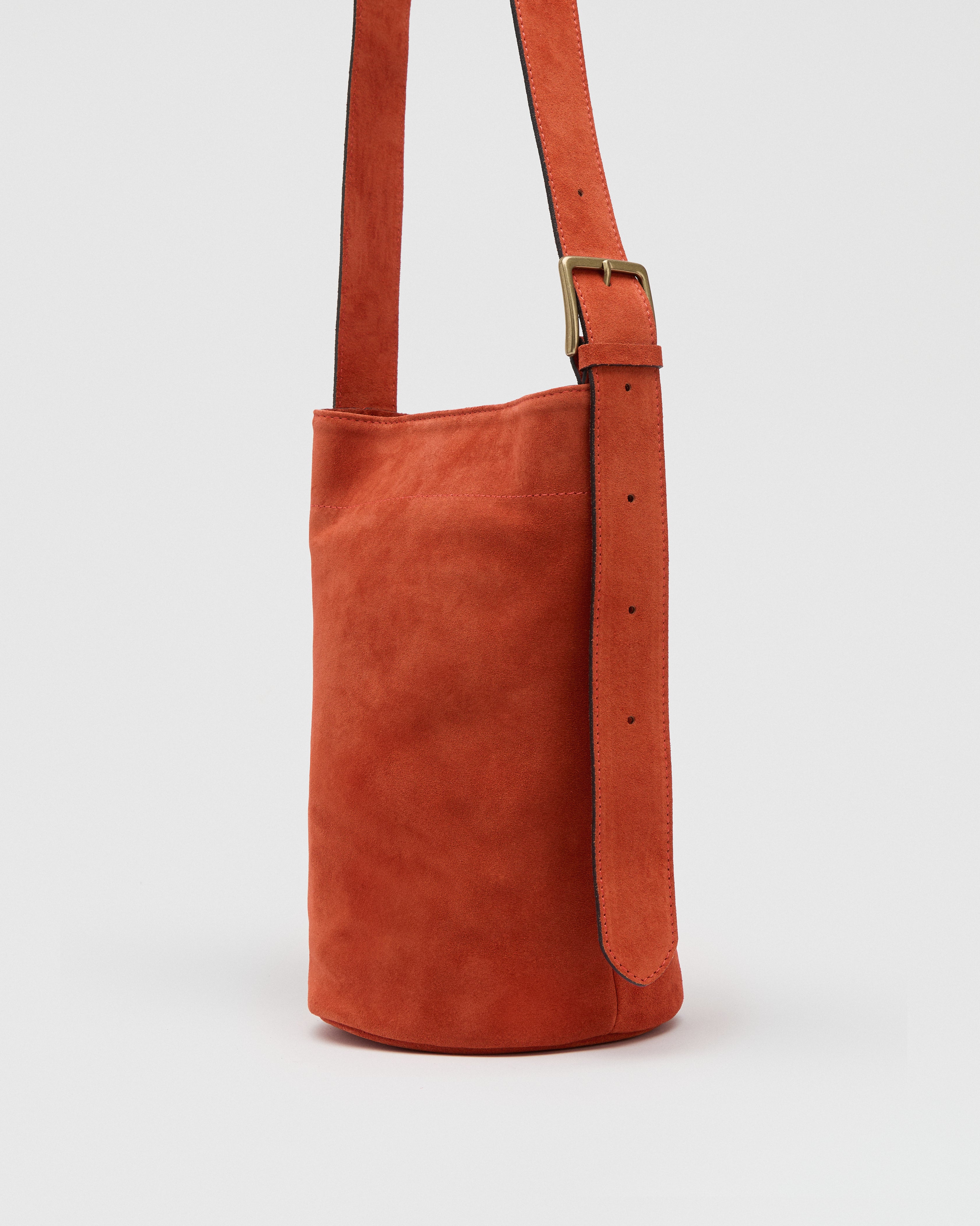 Più slanciato di un secchiello tradizionale, ha una silhouette morbida. Indossato a spalla o a tracolla è perfetto per un look disinvolto. La chiusura con bottone a pressione lo rende pratico e funzionale, mentre la tracolla con fibbia elegante aggiunge un tocco sofisticato.