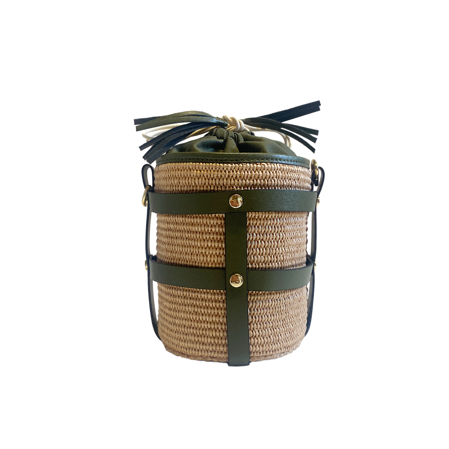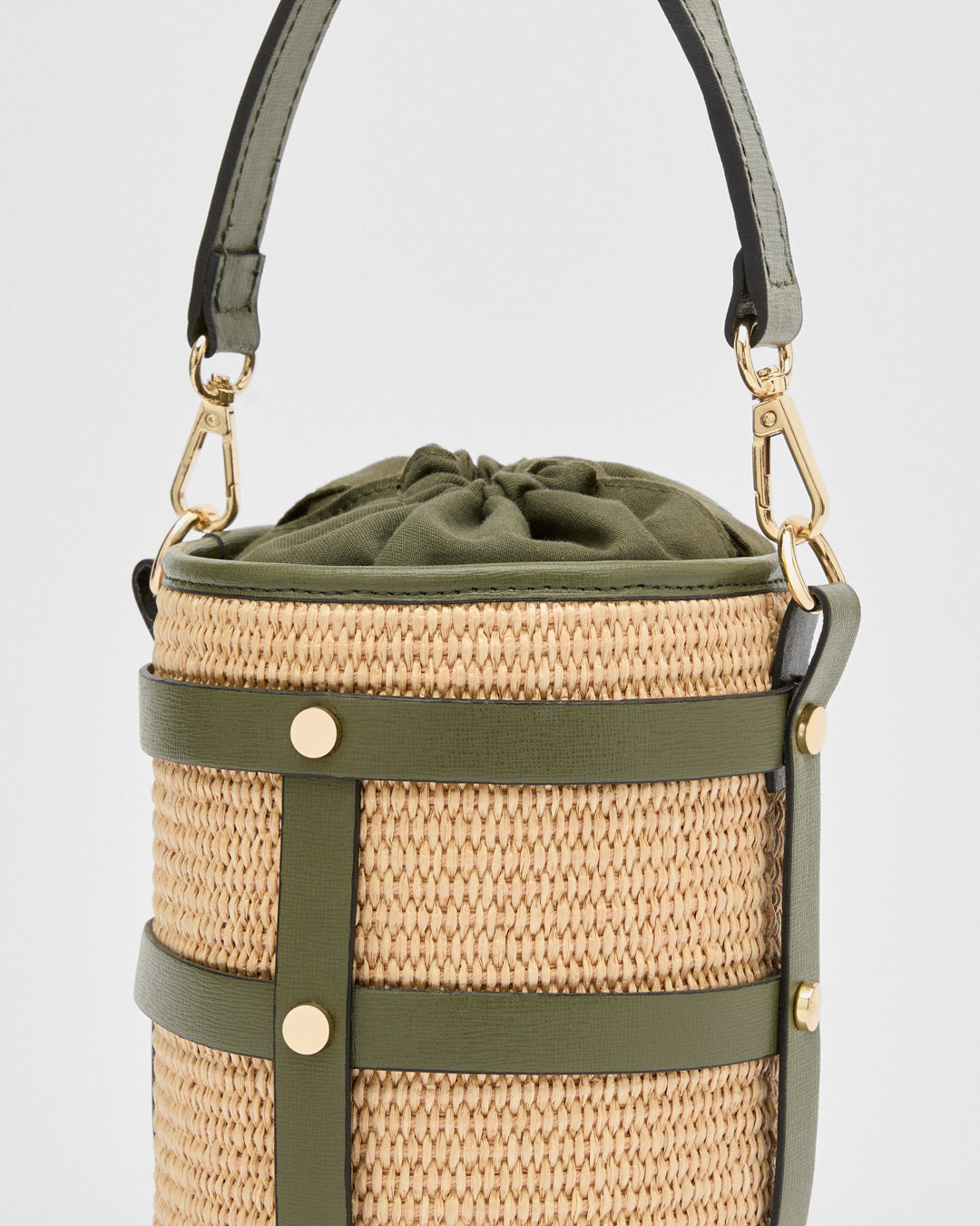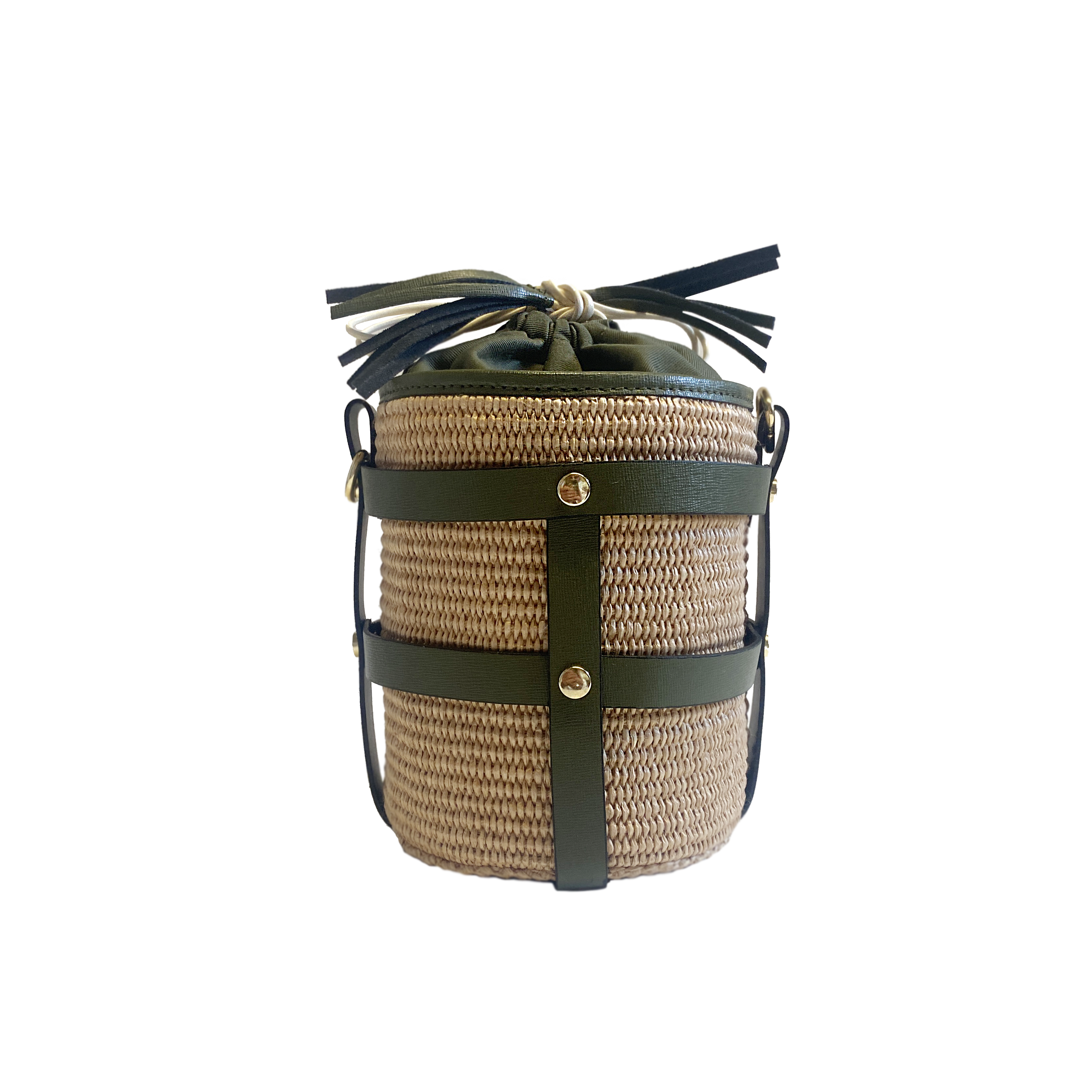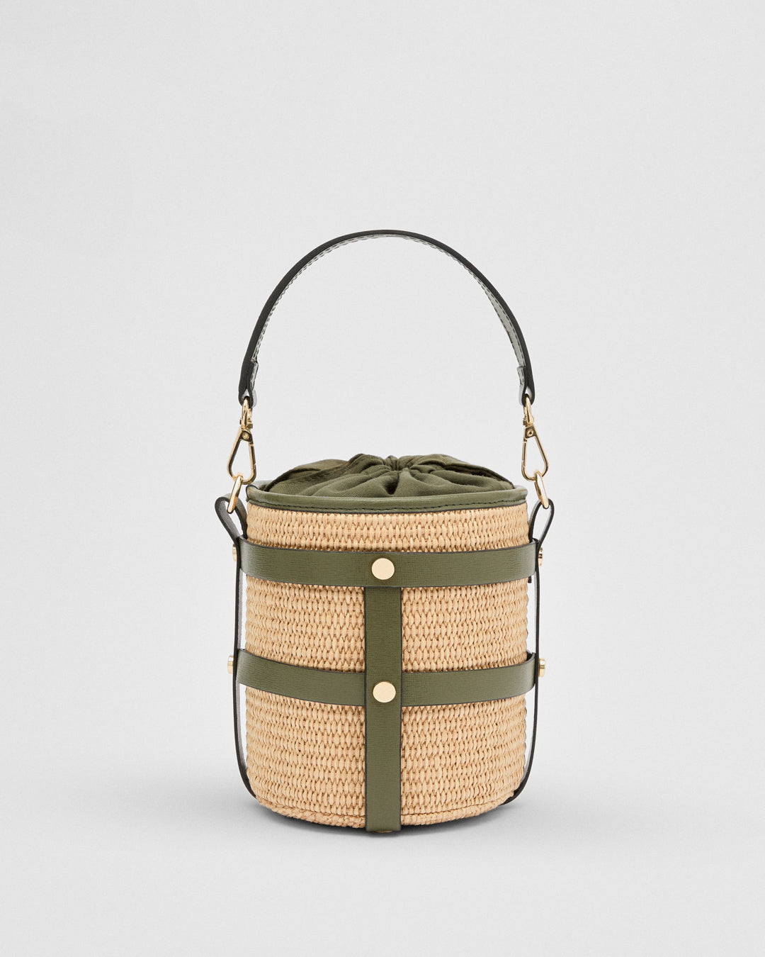 Elegante, moderno e con un tocco rock. Lucie è un secchiello che unisce sofisticatezza e grinta. La sua anima in rafia, incorniciata da fasce in pelle saffiano, crea un raffinato contrasto, mentre i dettagli dorati effetto borchia aggiungono un tocco deciso e distintivo.