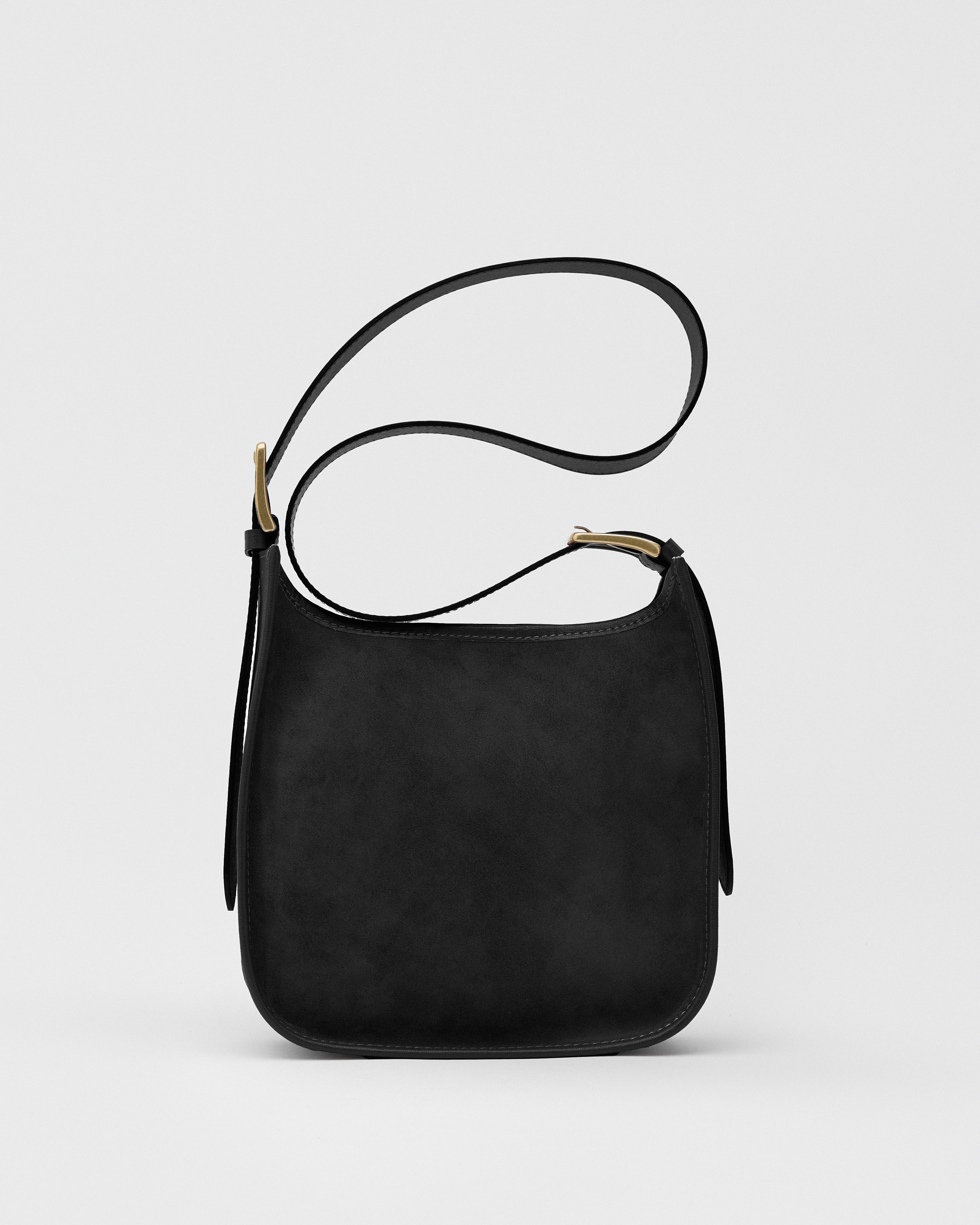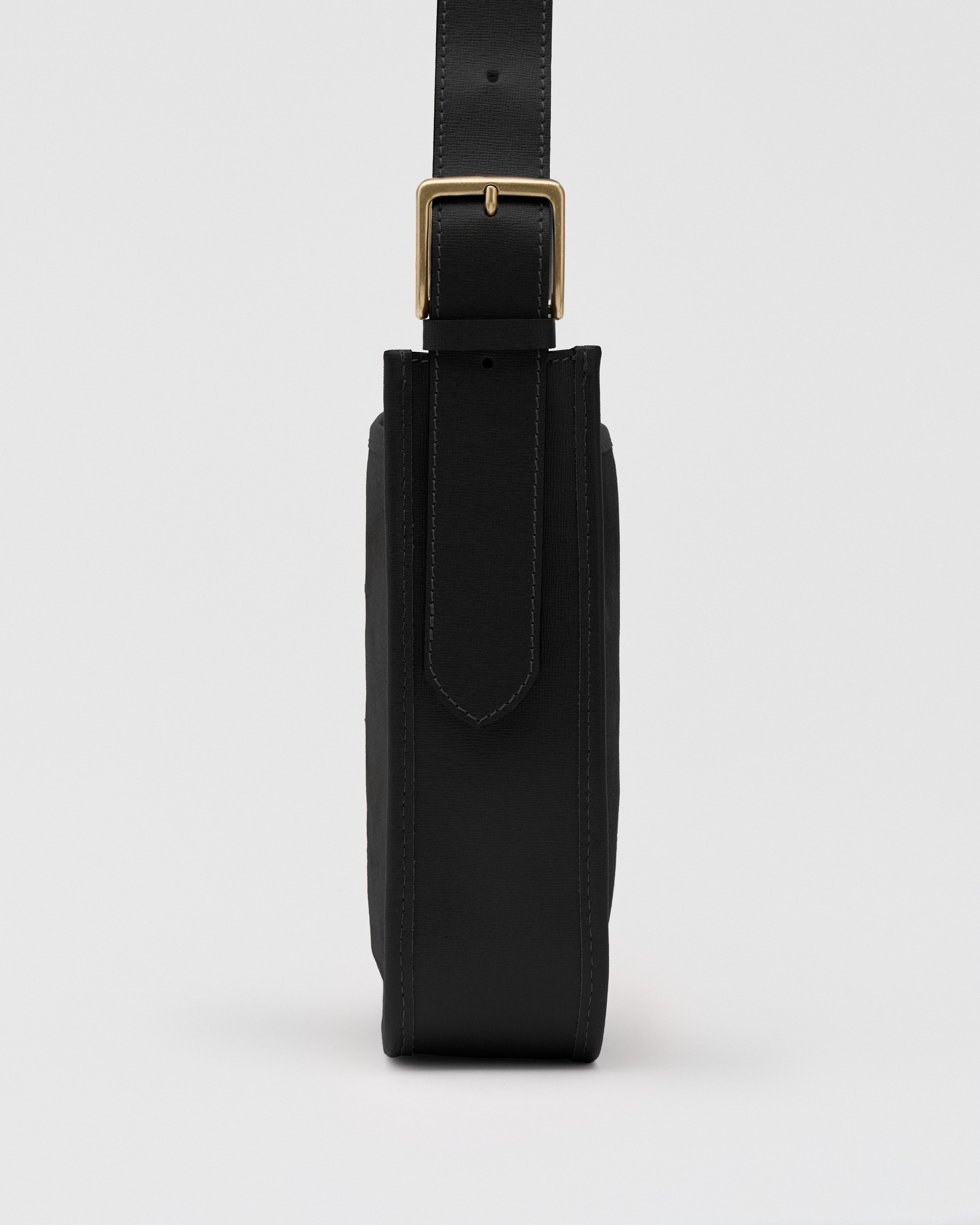 Linee fluide e sofisticate, dettagli curati e un’anima versatile. Realizzato in suede, è impreziosito da profili in pelle saffiano e dettagli in metallo dorato, che ne esaltano il design. La sua ampia tracolla assicura il massimo comfort, mentre la chiusura a bottone a pressione garantisce sicurezza e praticità.