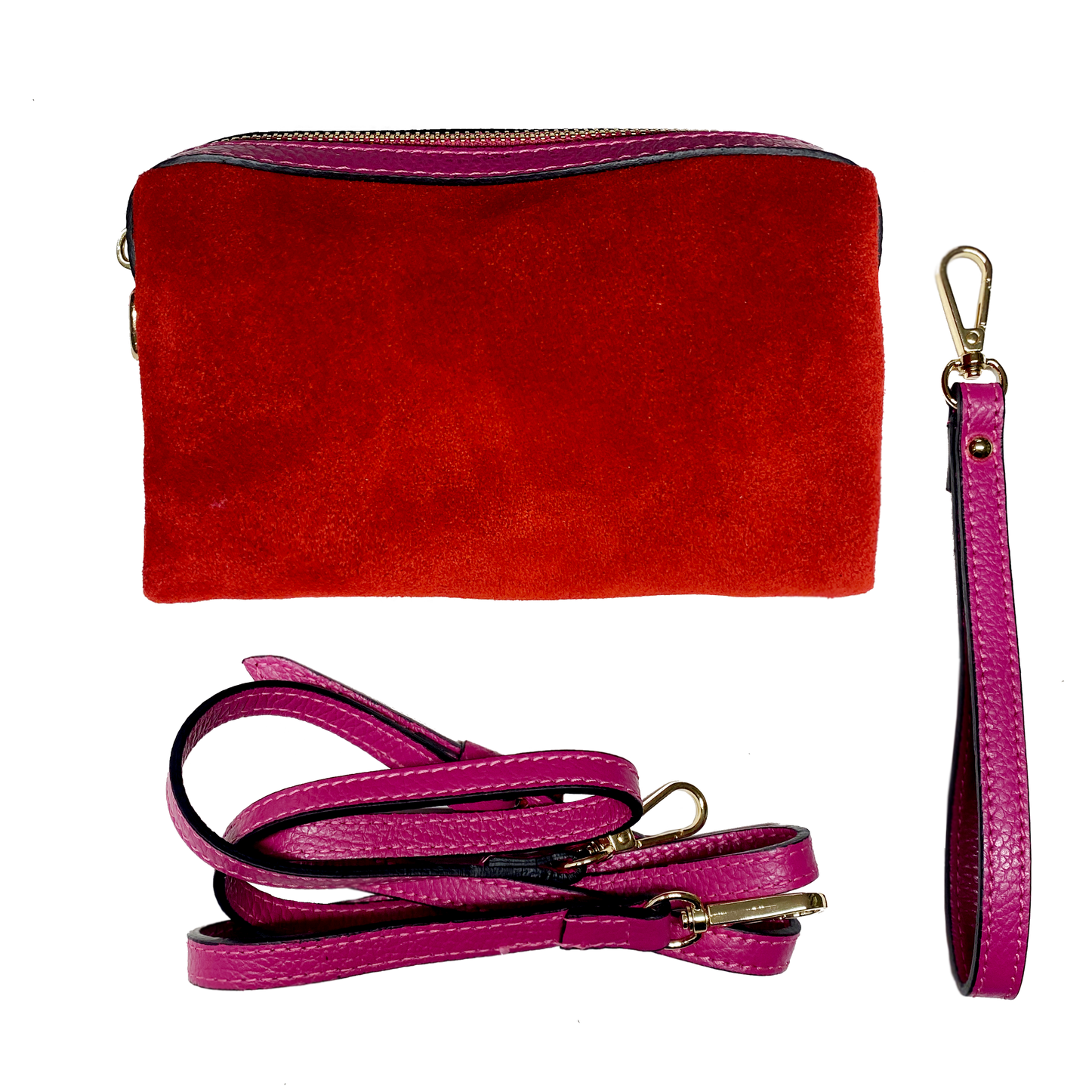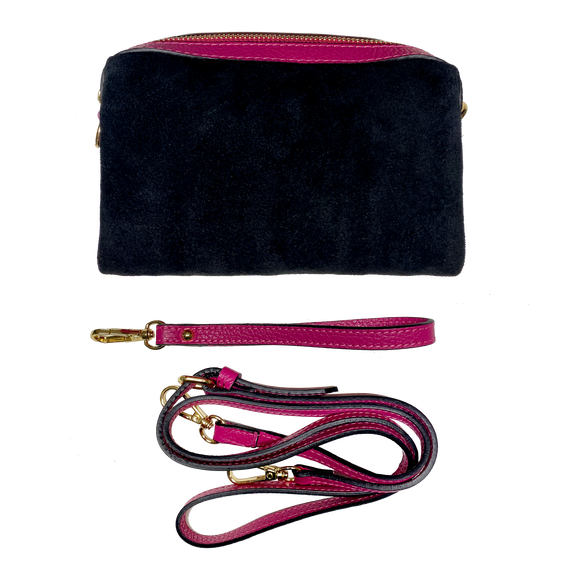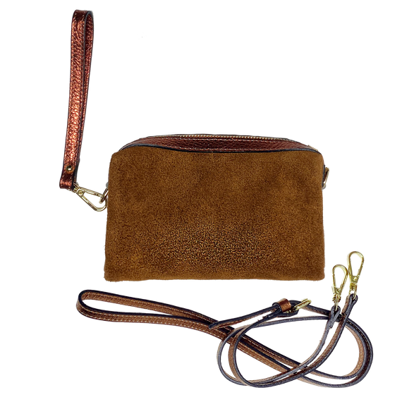 In suede con profili in pelle, per un tocco avvolgente e raffinato.
