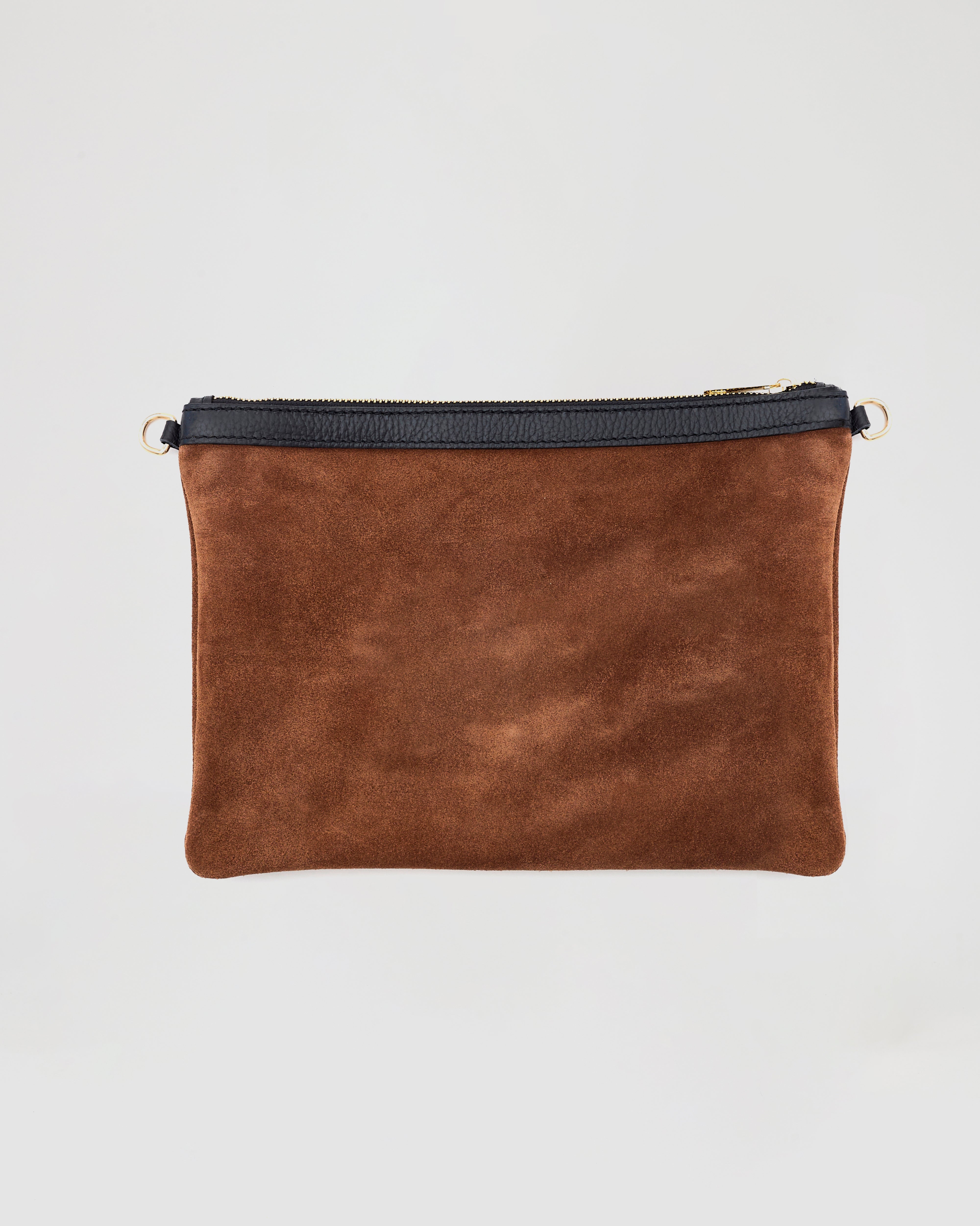Réalisée en suède doux et léger, avec des détails en cuir coloré.