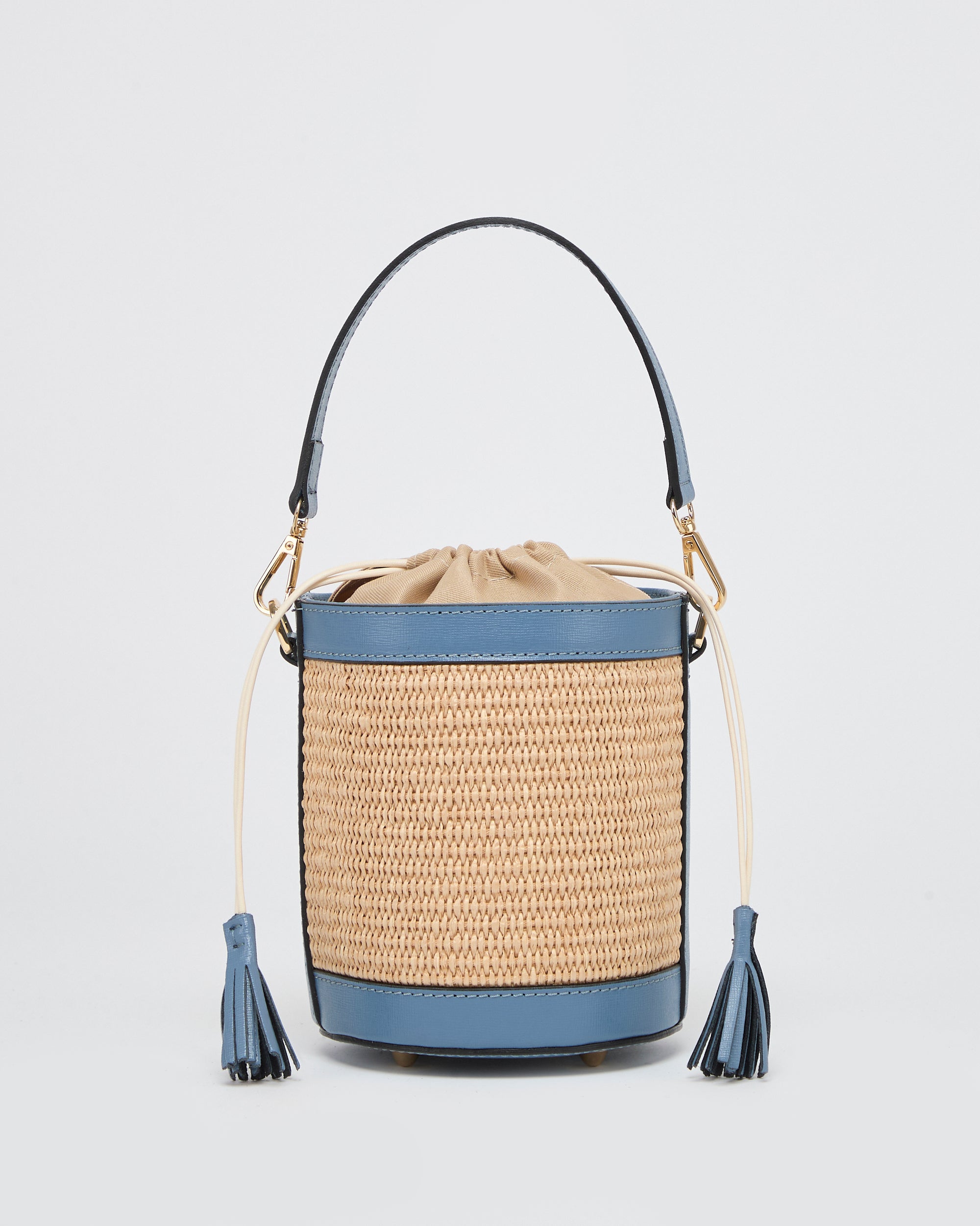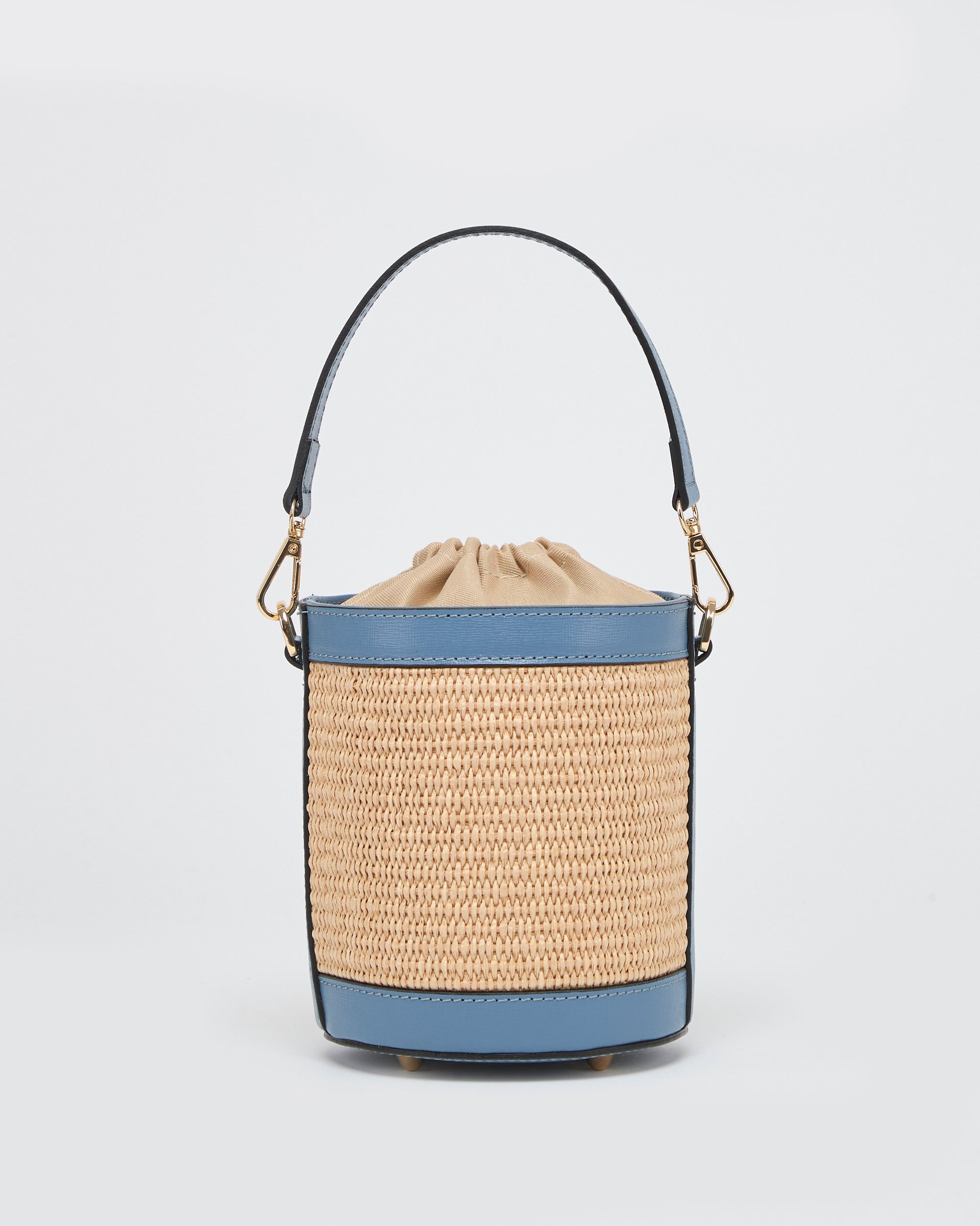 Realizzato in rafia con dettagli in pelle saffiano, si distingue per la sua e raffinatezza assoluta.
