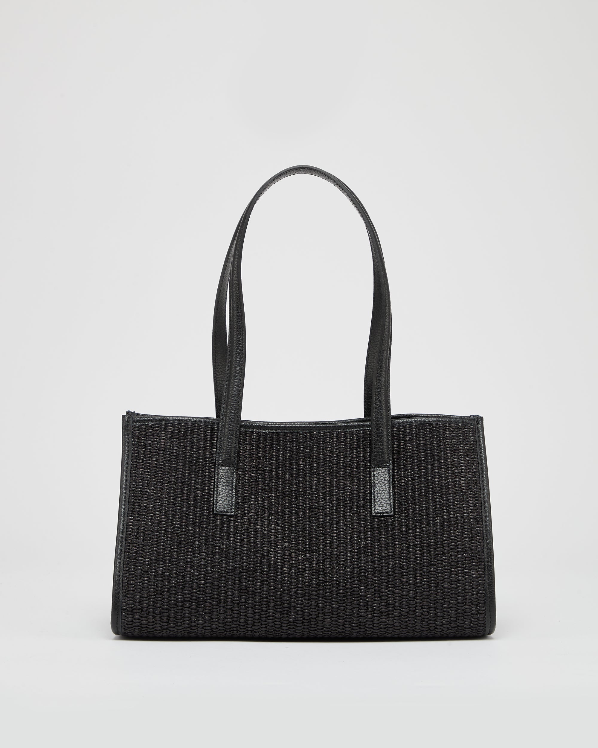 Realizzata in rafia naturale con profili in pelle colorata.