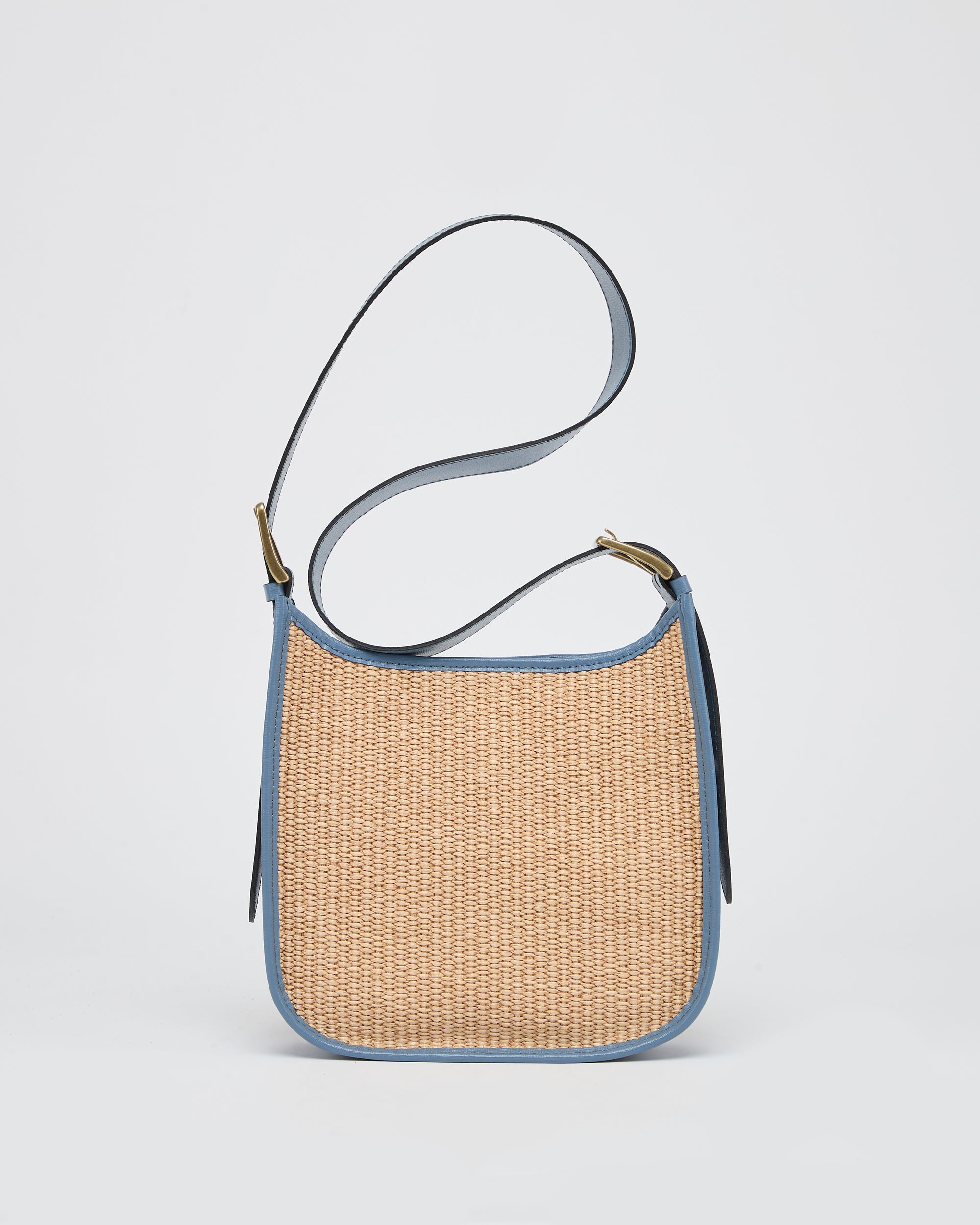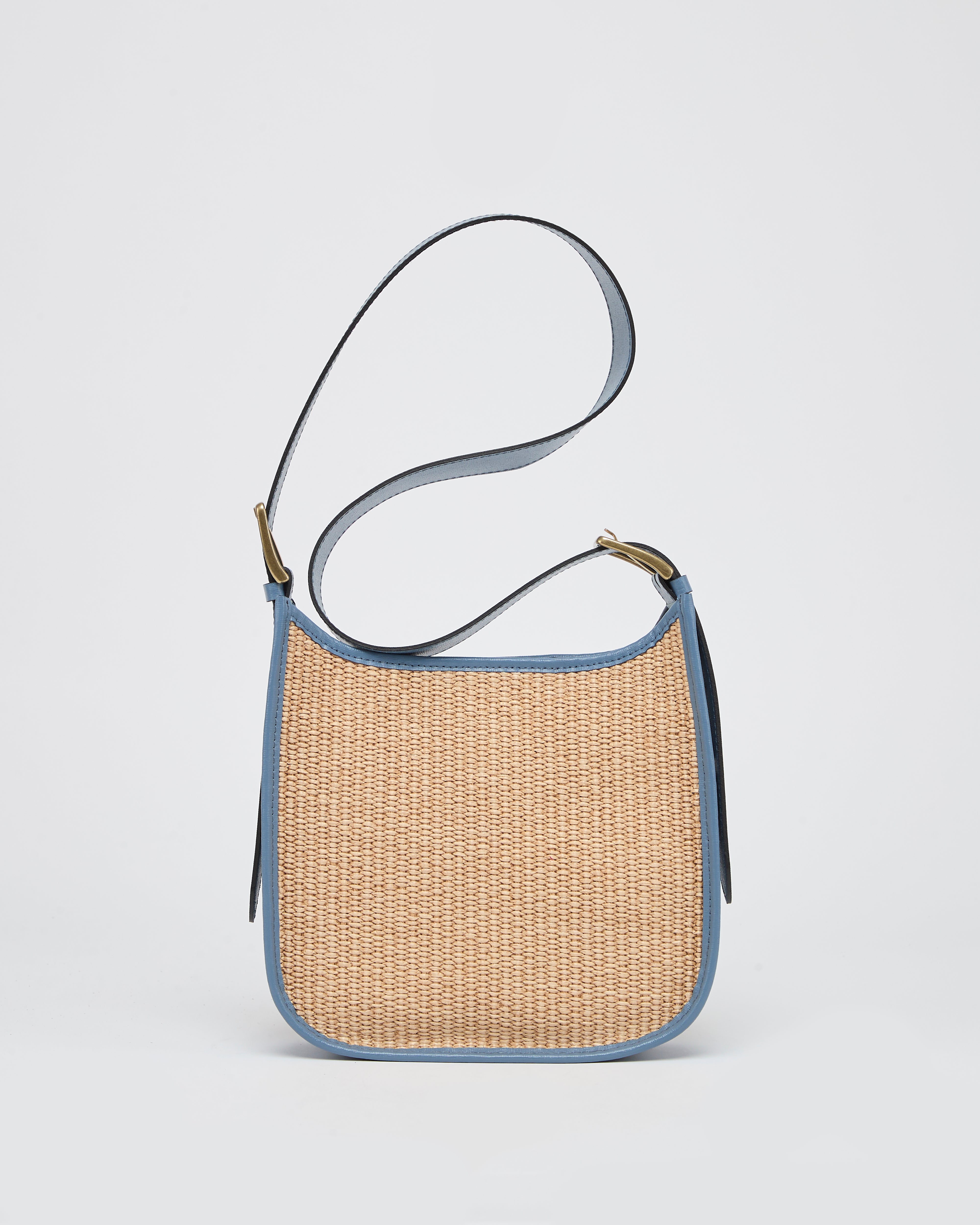 Linee fluide e sofisticate, dettagli curati e un’anima versatile. Realizzato in rafia, è impreziosito da profili in pelle saffiano e dettagli in metallo dorato, che ne esaltano il design. La sua ampia tracolla assicura il massimo comfort, mentre la chiusura a bottone a pressione garantisce sicurezza e praticità.
