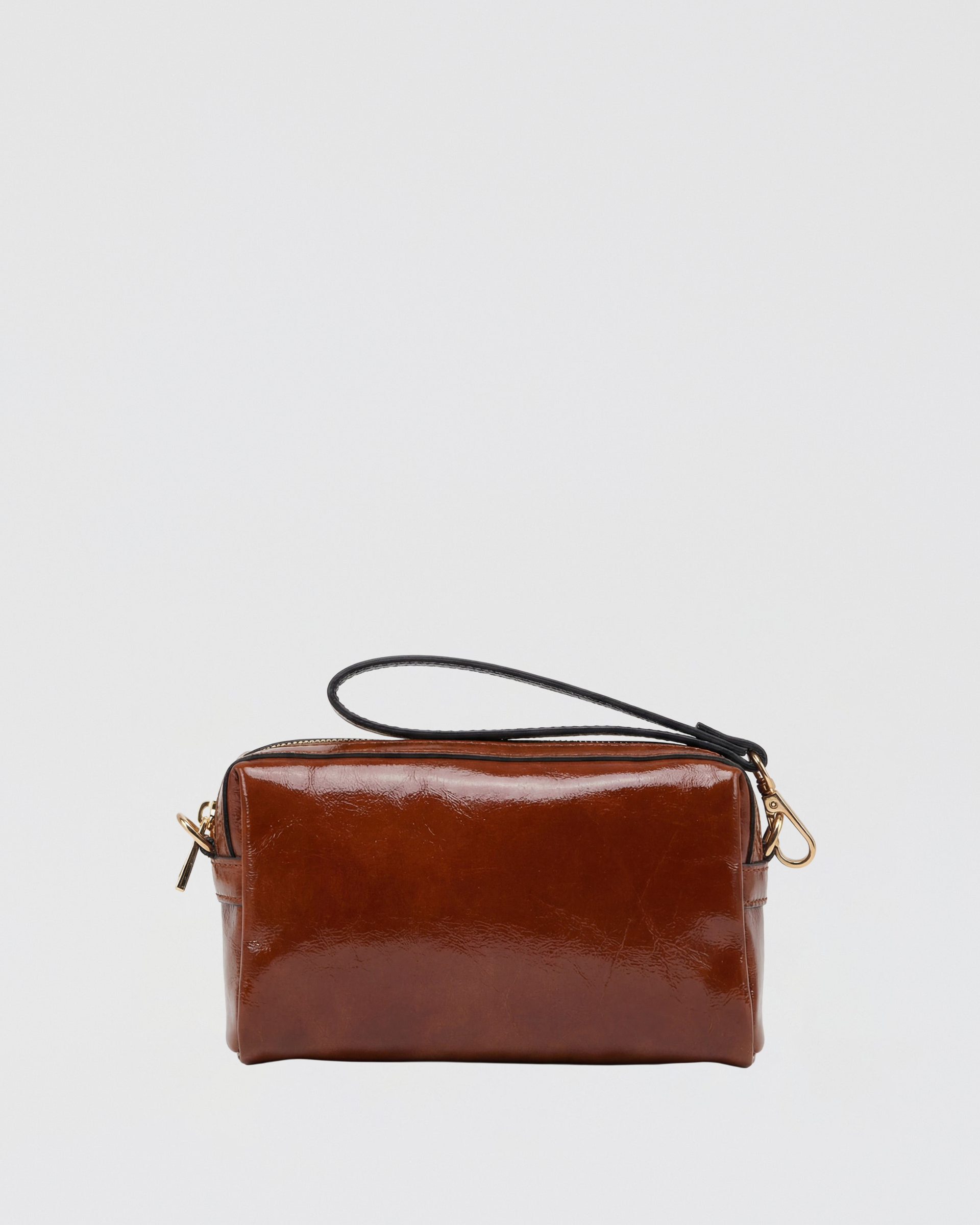 In vernice con profili in pelle colorata, per un tocco avvolgente e raffinato.