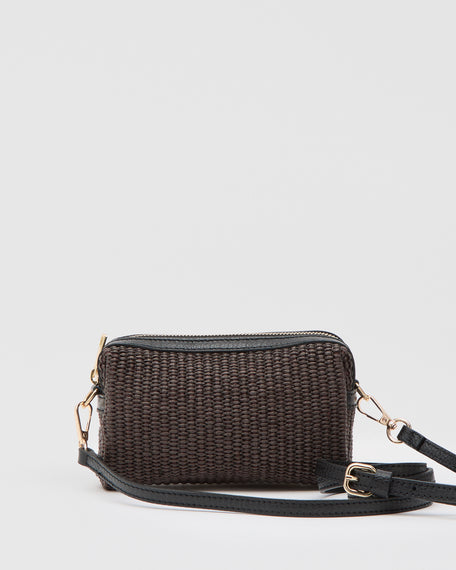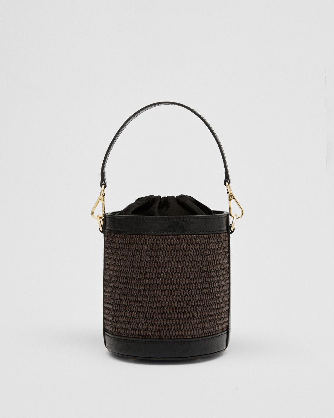 Crafted from raffia with saffiano leather details, it stands out for its unmistakable refinement.
