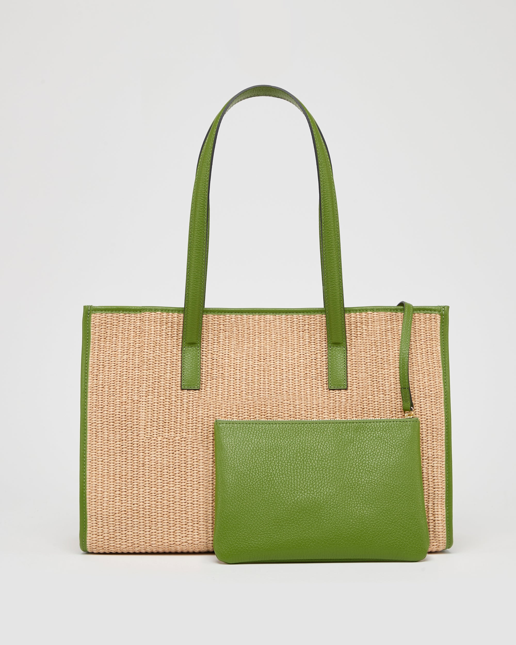 Elegant yet casual, chic yet essential, this tote bag is the perfect blend of style and practicality. Generously spacious, it’s crafted in raffia with refined leather details. The interior is lined with colorful fabric and includes a handy pouch to keep everything safe and organized.