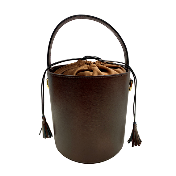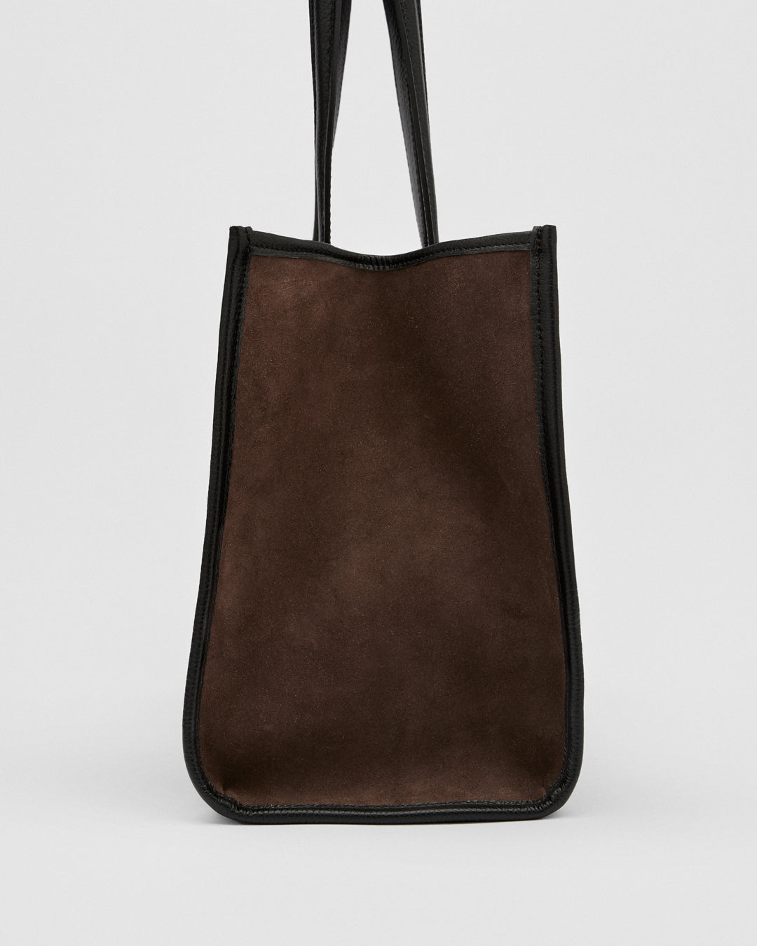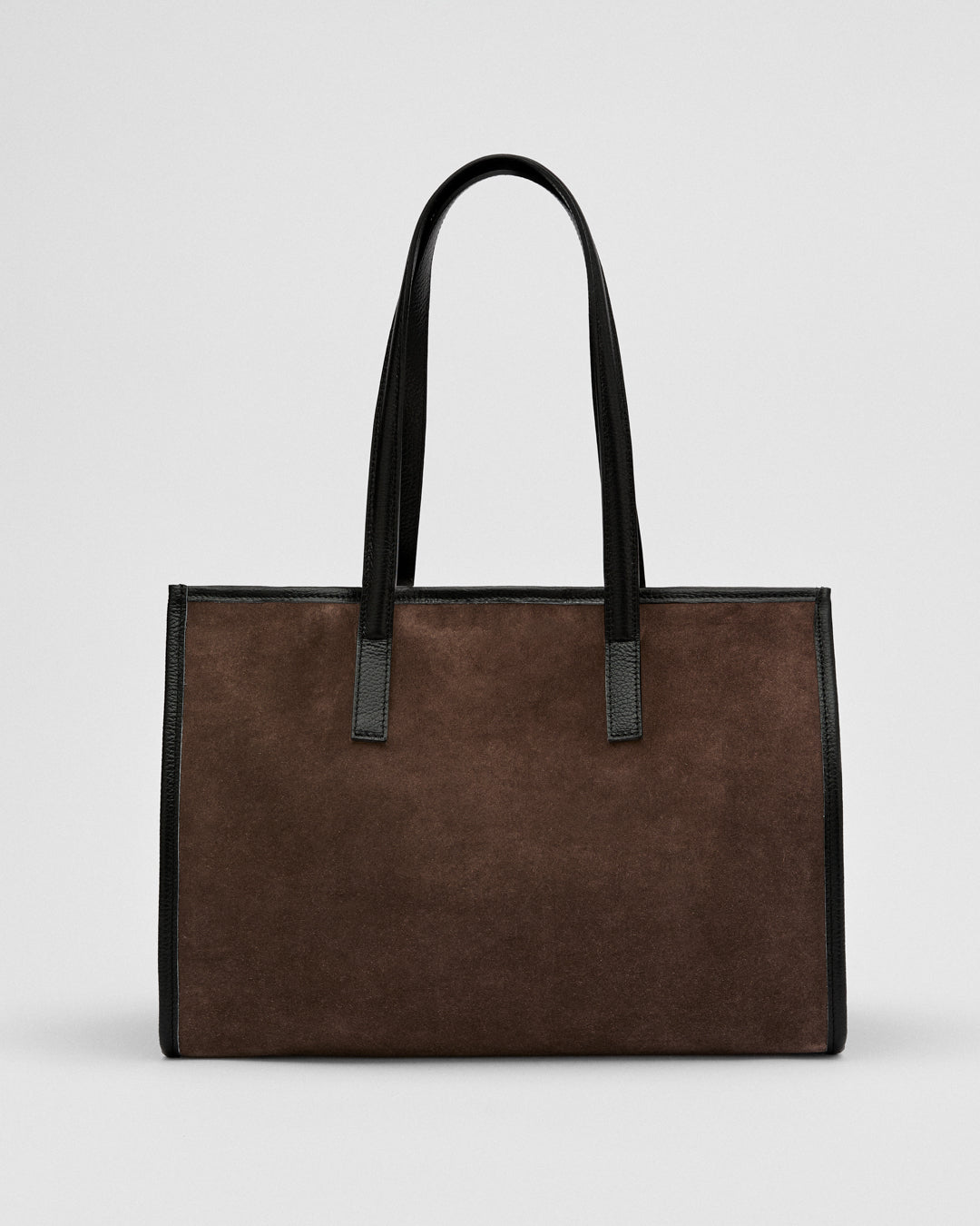Generously spacious, it’s crafted from suede with leather details.